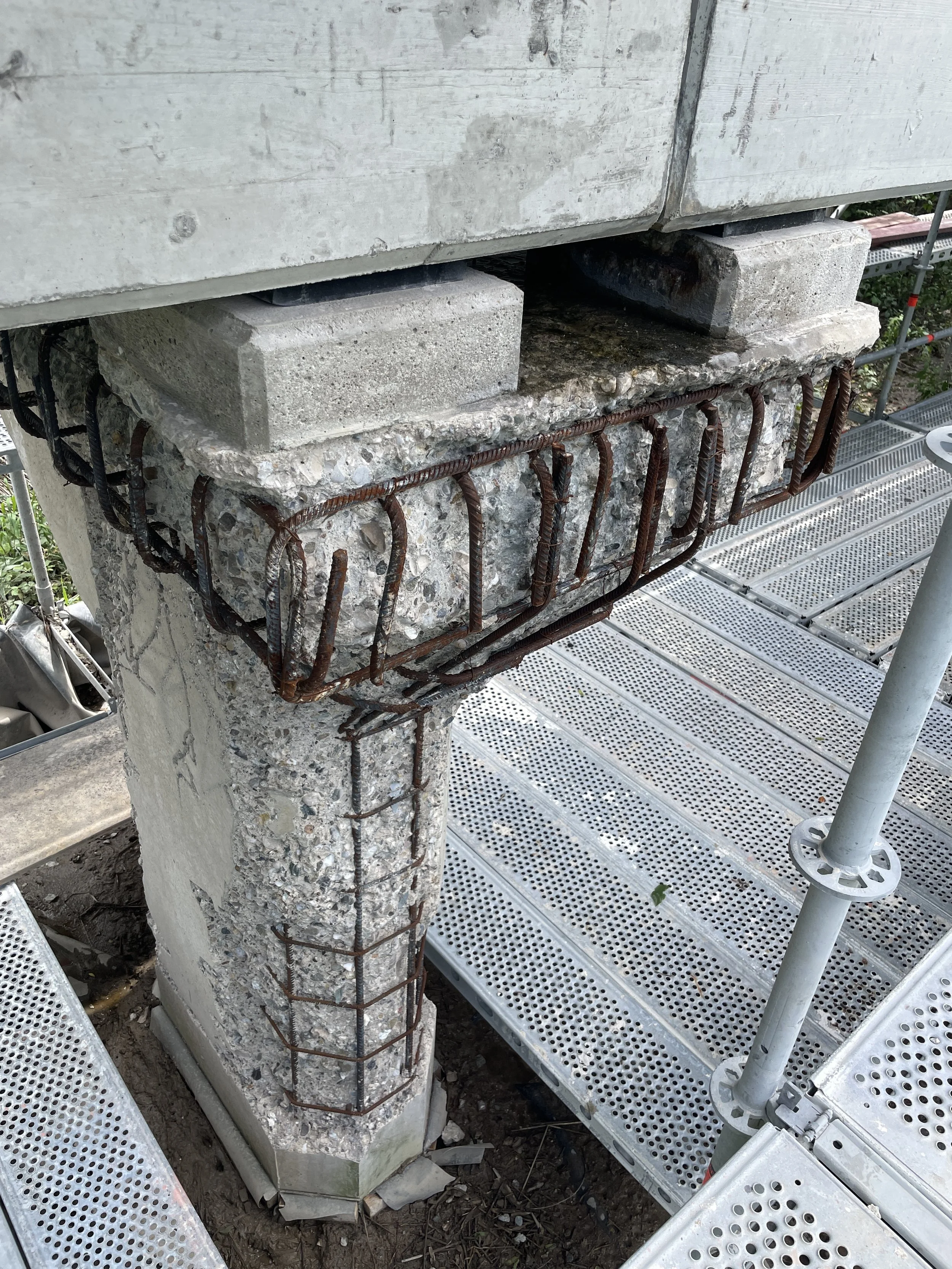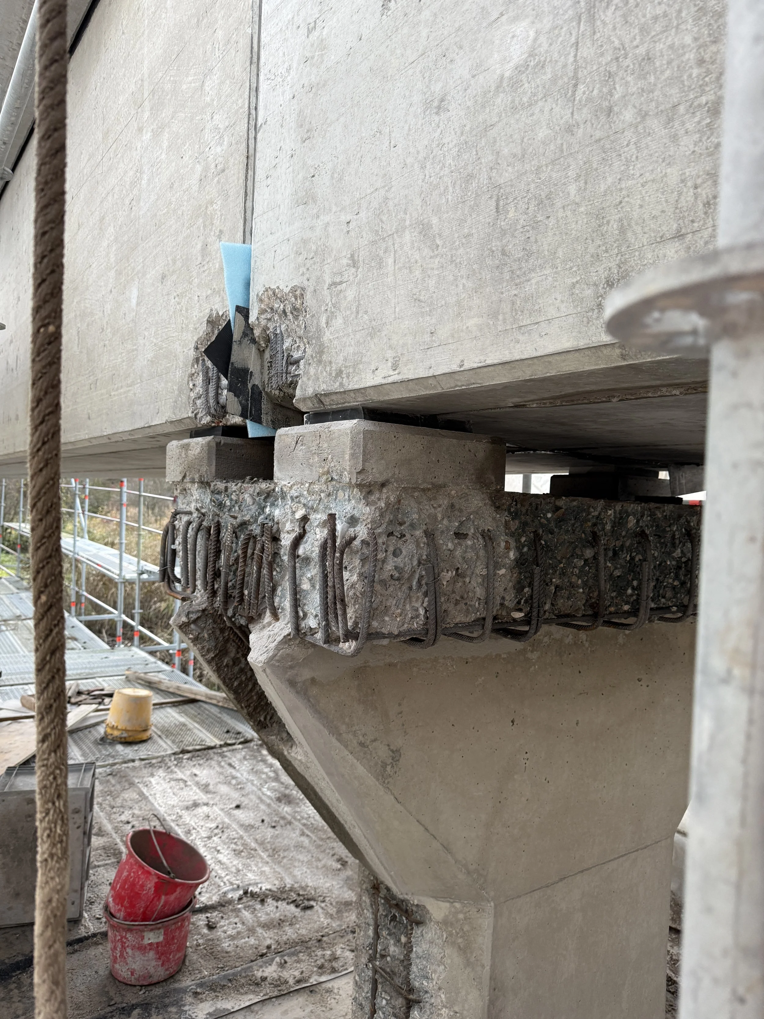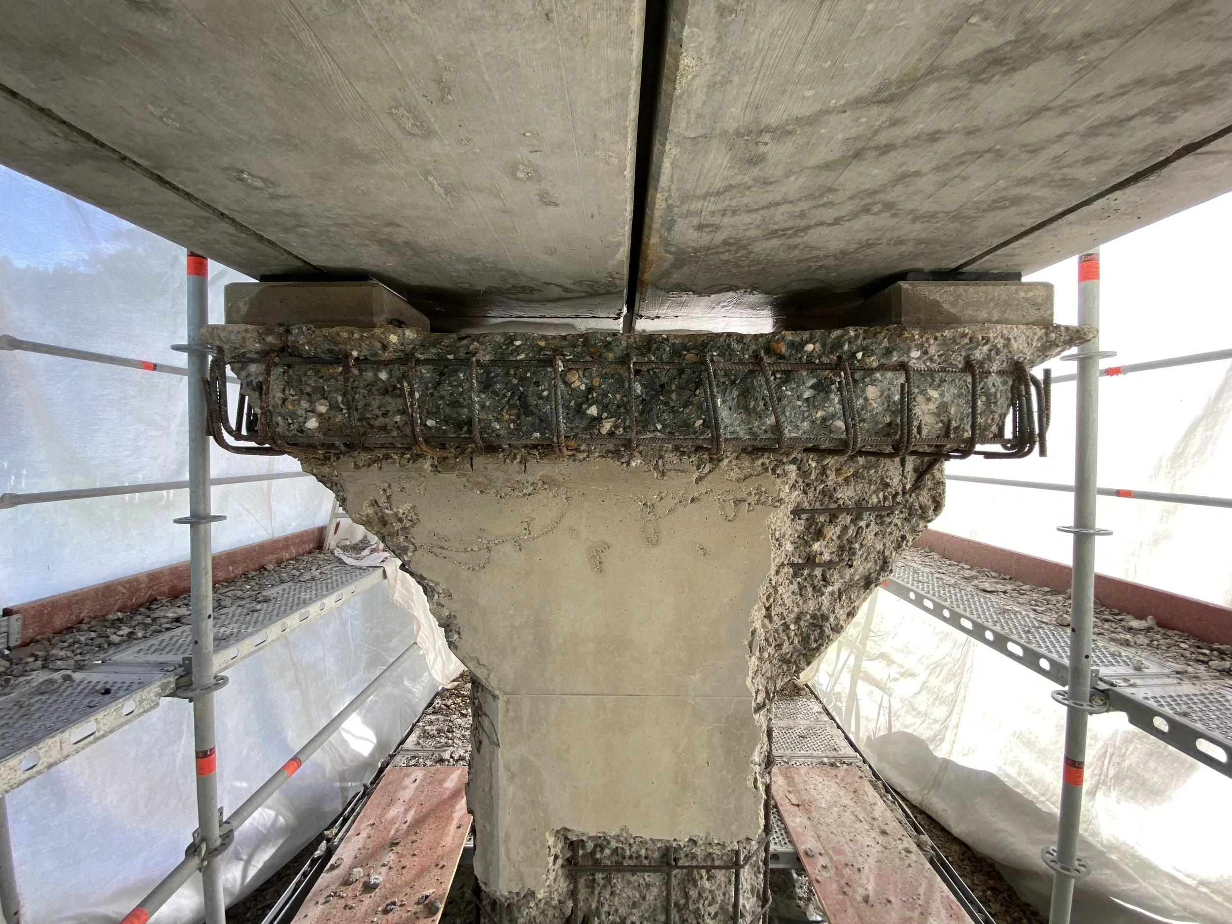 Die Maßnahmen umfassten den Abtrag geschädigten Betons, die Reprofilierung mit Spritz- und Vergussbeton, das Aufbringen einer Carbonatisierungsbremse sowie eine neue mehrlagige Abdichtung aus Polymethylmethacrylat gemäß den technischen Regelwerken.