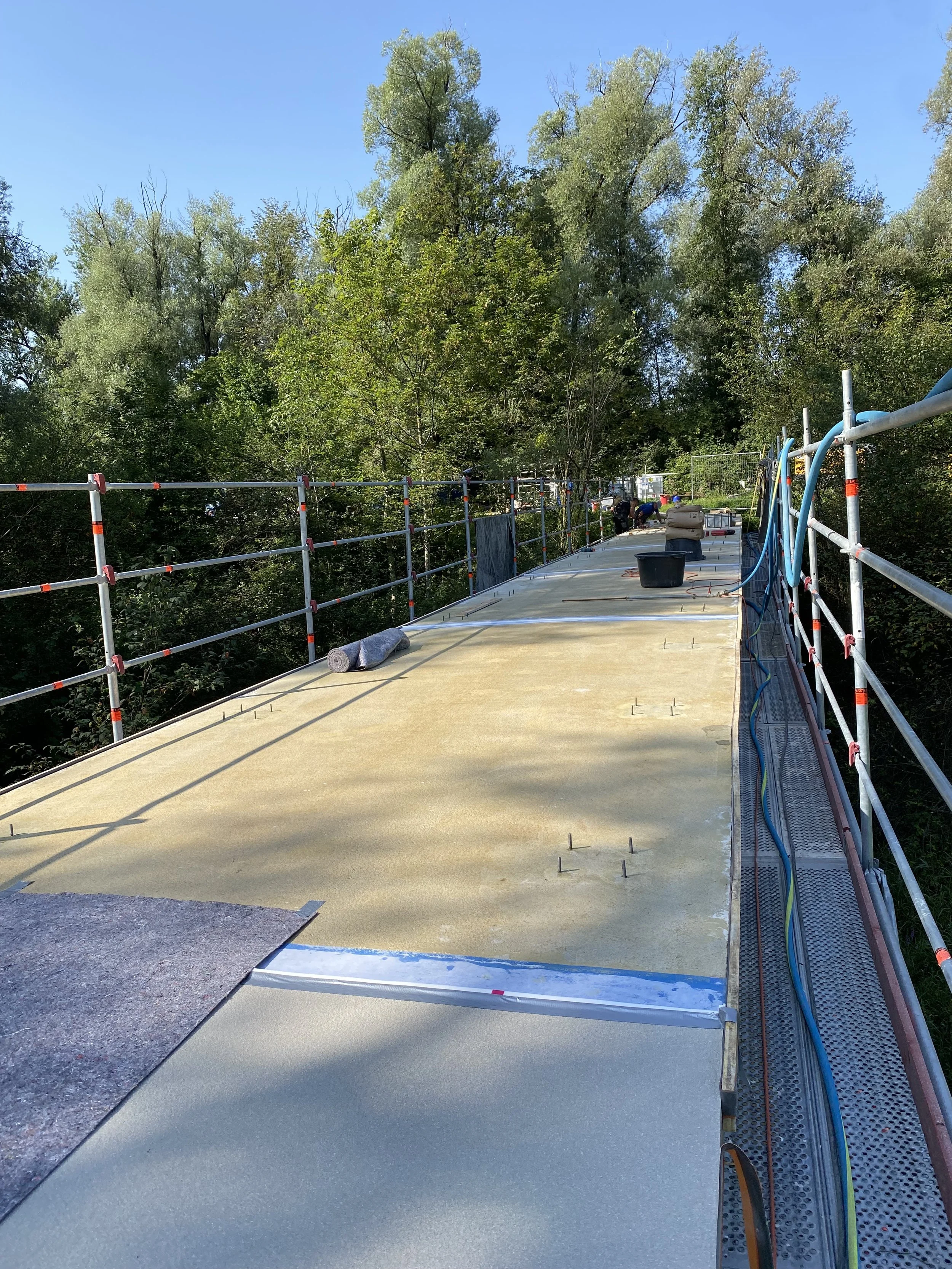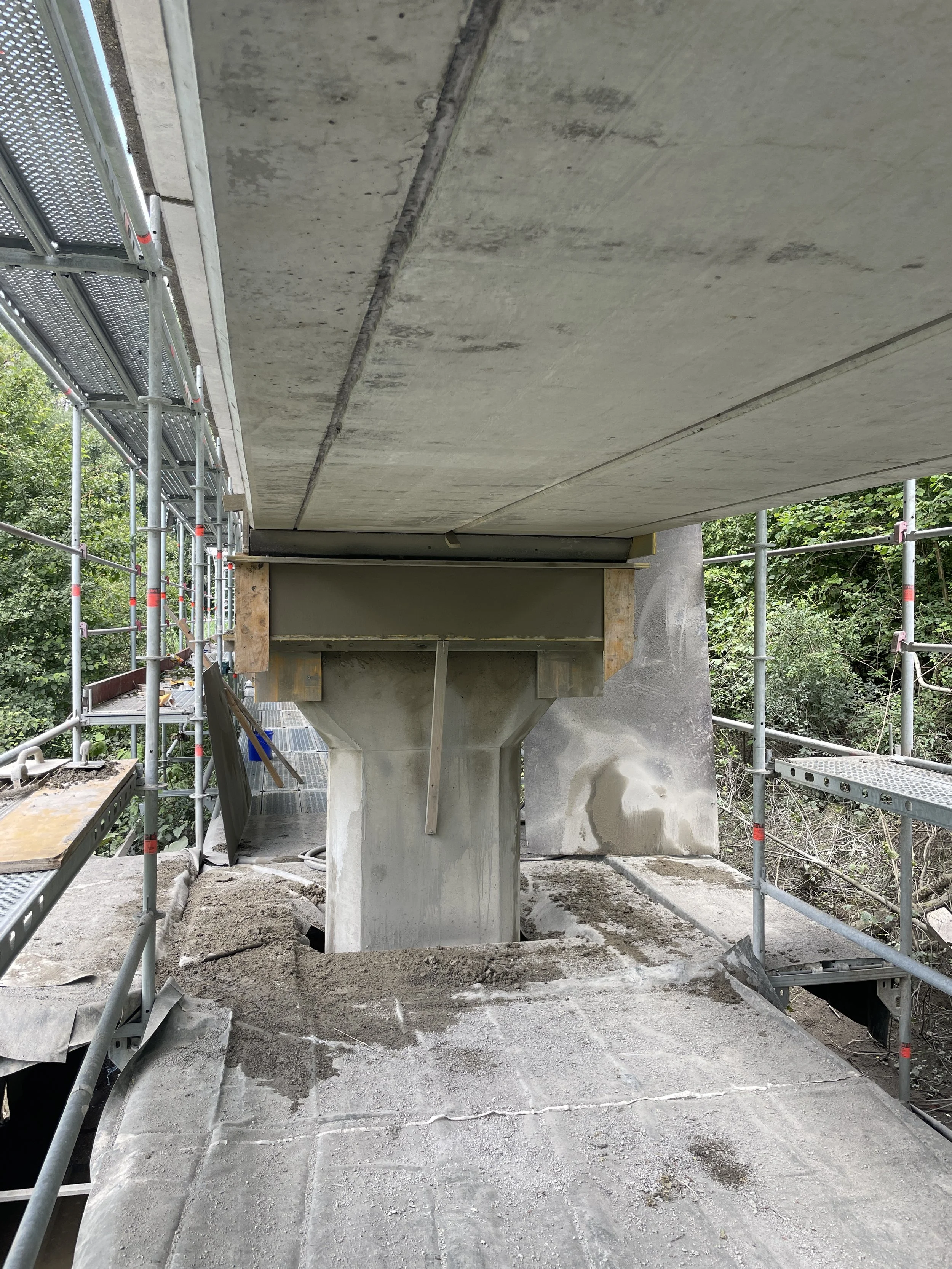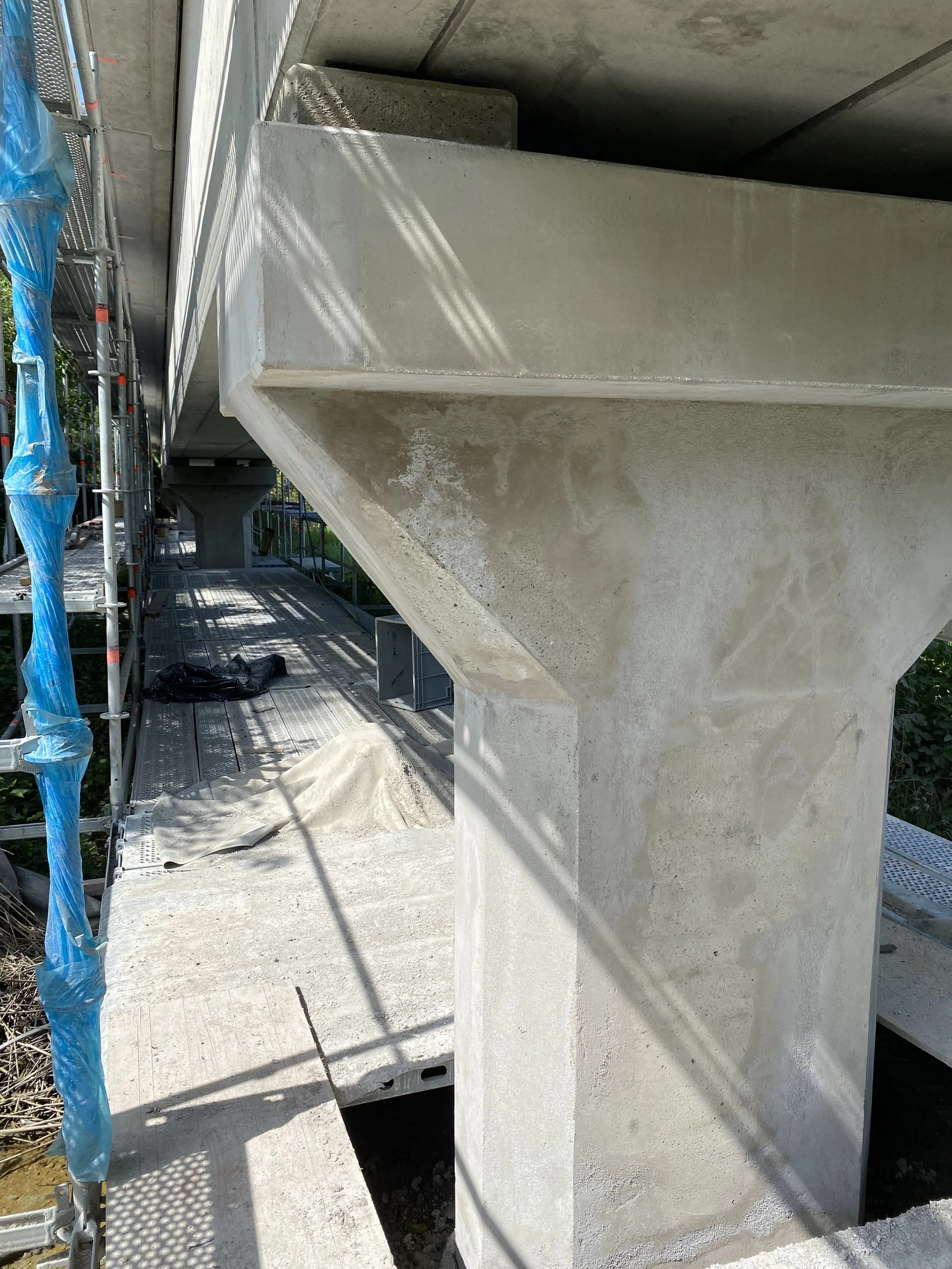 Die Maßnahmen umfassten den Abtrag geschädigten Betons, die Reprofilierung mit Spritz- und Vergussbeton, das Aufbringen einer Carbonatisierungsbremse sowie eine neue mehrlagige Abdichtung aus Polymethylmethacrylat gemäß den technischen Regelwerken.