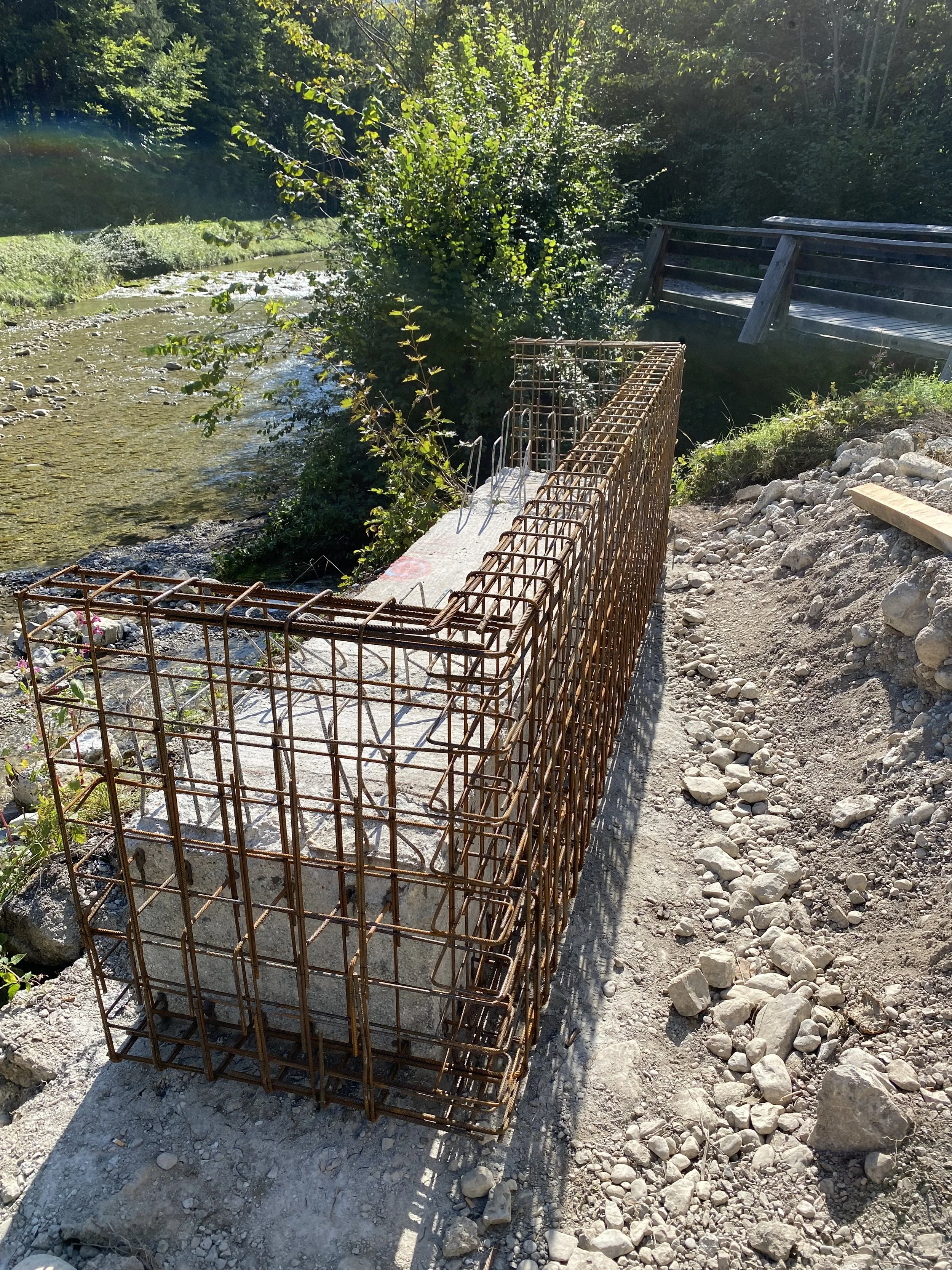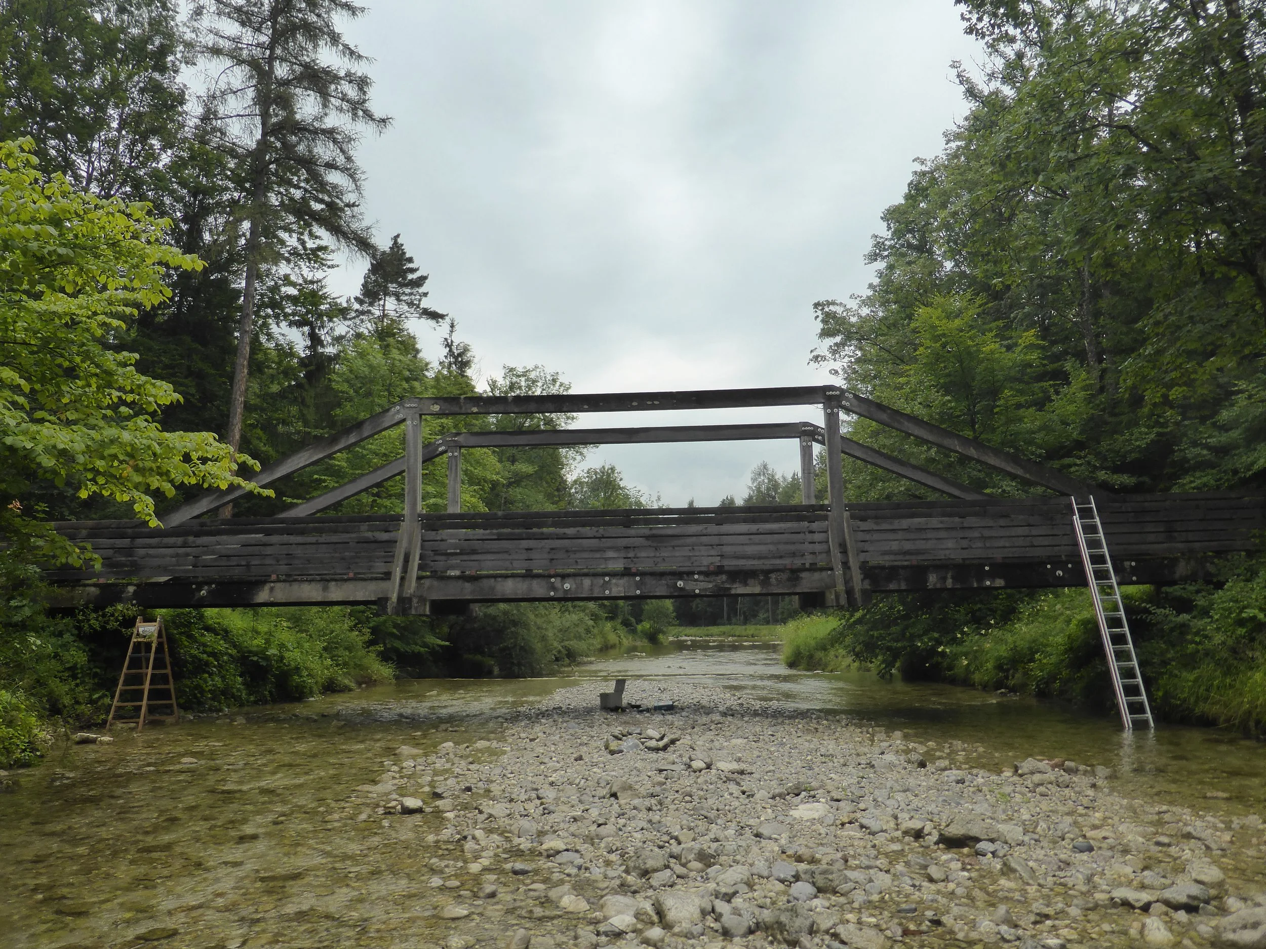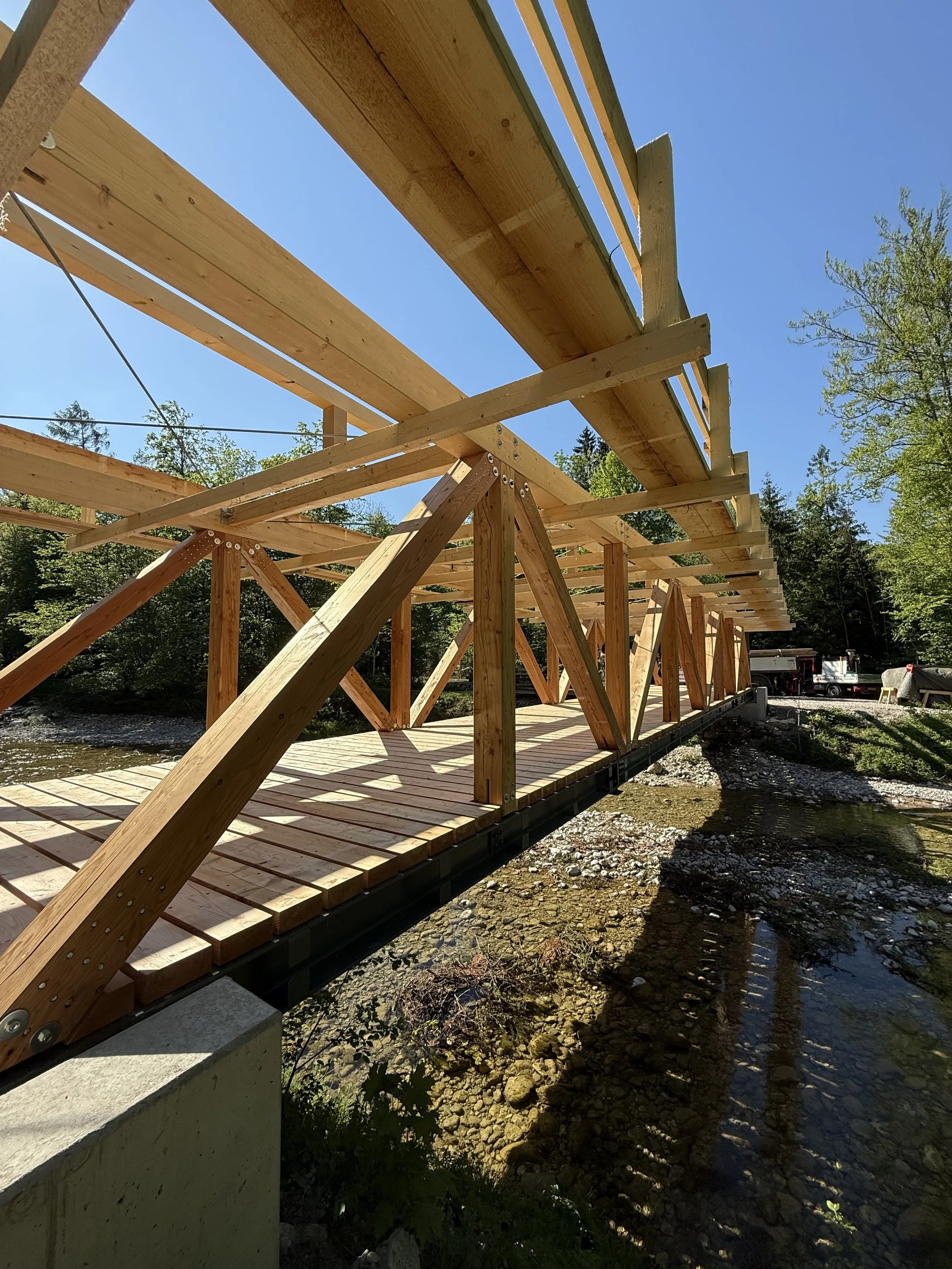 Die neue, überdachte Holzfachwerkbrücke erhielt eine umfassend sanierte Unterkonstruktion mittels Rodungs-, Erd- und Betoninstand-setzungsarbeiten. Sie kombiniert Holz und Stahl zu traditionellem Erscheinungsbild bei moderner Tragfähigkeit.